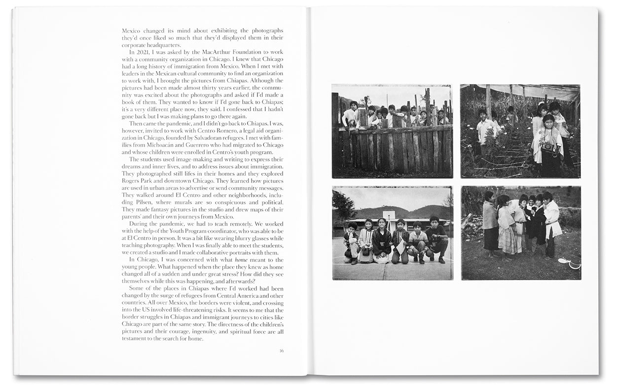 This book brings together Ewald’s original project with new work made in collaboration with fifteen young Mexican Americans living in Chicago, coordinated with the help of Centro Romero, an immigrant service organisation. These images respond to many of the same subjects as those by Ewald’s 1990s students, with an emphasis now on capturing inner lives and dreams as a way of reckoning with the unvoiced experiences of immigration. The themes of restriction and self-reflection that emerged from this new work were intensified by being made in part under COVID lockdown. Together, the Chiapas and Chicago projects trace the differences between growing up in different Mexican geographies with diverse histories, while reflecting on to the joys and sorrows of childhood.